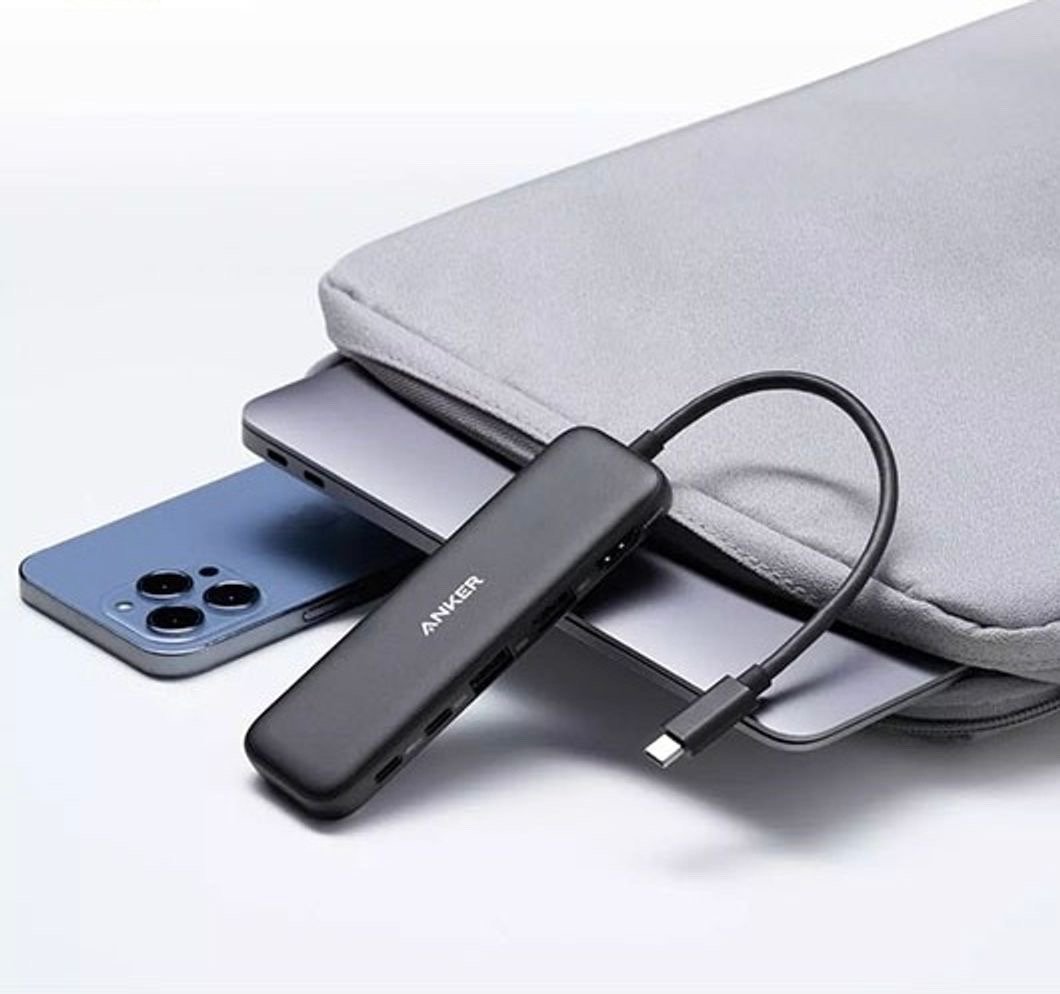 • Add more ports to your USB-C laptop with the Anker USB-C 5-in-1 multi-port adapter.