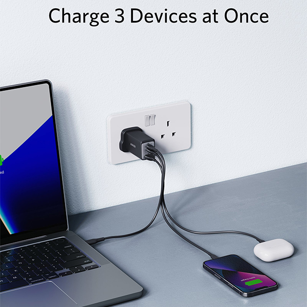 • Charge Simultaneously: Fast charge up to 3 devices at once, eliminating the need for multiple chargers.