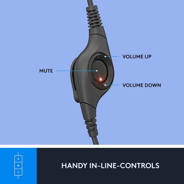 • In-Line Controls: Volume adjustment and mute button right on the headset cable.