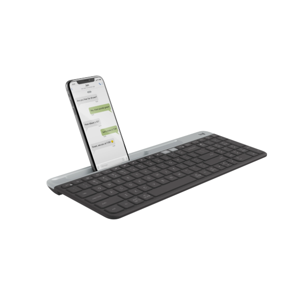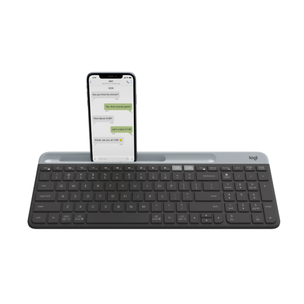 - Keyboard: Slim, compact keyboard with integrated phone slot for convenient multi-device use