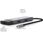 5 in 1 USB-C Hub: UH5020C turns a single USB-C port into 5 ports with a 4K@60Hz HDMI, 100W Power Delivery, 1× USB-C Data Port, 2× USB-A Data Ports.