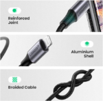 Nylon braided Lightning to Aux Cable for Car has excellent wear resistance and protects the inner conductor from the risk of cable breakage. Scratch-resistant aluminum housing not only gives the aux cable a nice look but also does a good job of dissipating heat