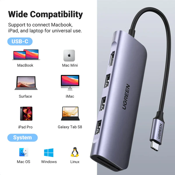 UGREEN Revodok 106 6-IN-1 USB-C Hub (100W PD, 4K@30Hz HDMI)