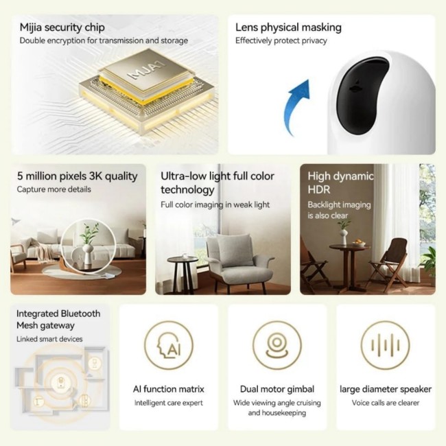 - Display & Resolution: 5MP camera with 2960 × 1666 resolution, capturing ultra-clear 3K images.